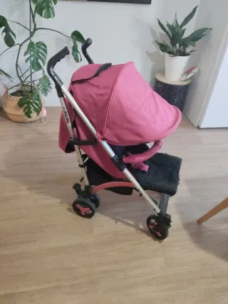 Silla de paseo de la marca Tuc Tuc, ideal para transportar a los más pequeños con comodidad, está en buen estado, exceptuando dos costuras que se han abierto, necesita coser y los mangos un poco desgastados, por lo demás, todo bien - Color rosa y negro. - Estructura ligera y plegable.