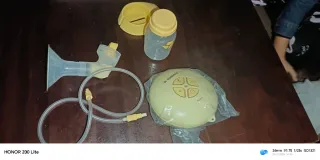 Sacaleches eléctrico Medela. - Incluye motor y accesorios. - Color amarillo y blanco.