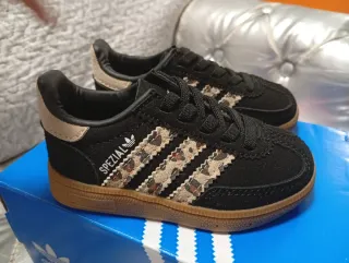 Zapatillas Adidas Spezial con un diseño llamativo. - Parte superior de ante negro. - Detalle de las tres rayas con estampado de leopardo. - Suela de goma marrón. - Detalle Spezial en el lateral. Número 34