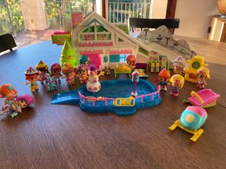Casa de las Bellies. Funciona todo perfectamente y con todos los accesorios. Incluye 11 mullecs Bellies con sus accesorios. Tiene un roto en uno de los cartones traseros