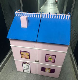 Casa de muñecas de estilo victoriano con un diseño clásico y elegante. Ideal para coleccionistas o para jugar. - Fachada amarilla con detalles en rojo y negro. - Tejado a dos aguas con buhardillas. - Balcón con barandilla. - Puertas y ventanas detalladas.