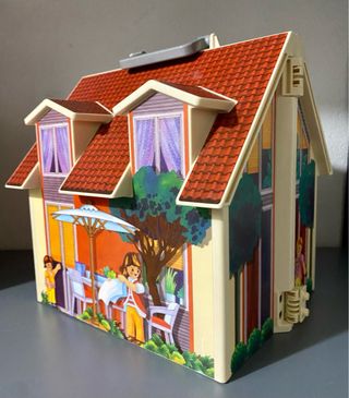Casa en formato maletín, para que sea más cómoda, de playmobil. Incluye todos los accesorios (la muñeca verde no está y la he sustituido por otra amarilla). El espejo del baño aún tiene el plástico protector. También incluye la CAJA y las instrucciones. Todo se encuentra en perfecto estado. Se ha usado muy poco por lo que está nueva. Cualquier duda del precio o algo, consultarme. Más artículos en mi perfil.