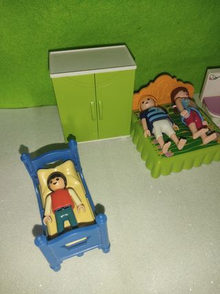 Conjunto Playmobil de dormitorio para bebé 5334 Incluye cuna, cambiador con móvil, figuras de padres e hijo, y accesorios. Cuarto casa casita de muñecas habitación recién nacido padre madre