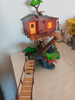 Preciosa casa del árbol de Playmobil, en muy buen estado. Incluye complementos y muñecos - Ideal para juegos imaginativos. - Perfecta para niños y niñas. - Le falta un peldaño como se ve en la foto. - posibilidad de añadir jep a juego.