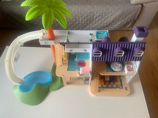 Preciosa casa de muñecas Mymy City Palmhouse, en excelentes condiciones. Incluye piscina, tobogán y jacuzzi. Es una casa de varios pisos con diferentes habitaciones y accesorios. Ideal para horas de juego creativo. - Casa de muñecas de varios pisos. - Incluye piscina y tobogán. - Accesorios incluidos: jacuzzi. - Perfecto estado.
