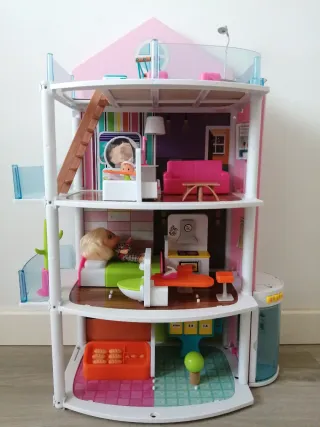 Casa de muñecas Rainbow High en muy buen estado. Ideal para horas de juego. - Incluye varios niveles y habitaciones. - Diseño detallado y colorido. - Se entrega con el mobiliario y desmontada.
