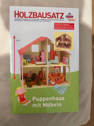 Kit de construcción de casa de muñecas de madera de la marca Pebaro. - Modelo: Holzbausatz. - 262 piezas en total - Tamaño final 4x37 cm - El tamaño final de 40x37 cm - Dimensiones: 33x33 cm aproximadamente