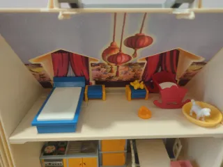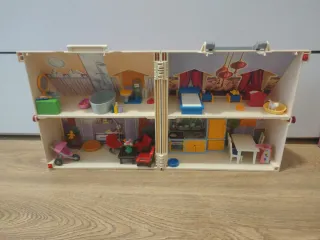 Casa de muñecas Playmobil con varios ambientes y accesorios. - Incluye mobiliario y figuras. - Diseño detallado de habitaciones. - Ideal para coleccionistas y juego infantil.