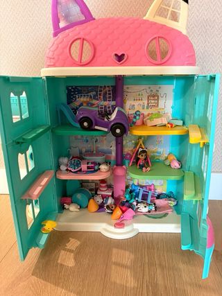 Casa de muñecas temática de Gabby's Dollhouse, con múltiples niveles y habitaciones. - Diseño colorido y detallado. - Incluye accesorios y figuras. - Ideal para juegos de rol. Se vende porque mi hija ya se ha hecho mayor, y ahora juega con otro tipo de cosas. Muy recomendable, se ha pasado horas entretenida!