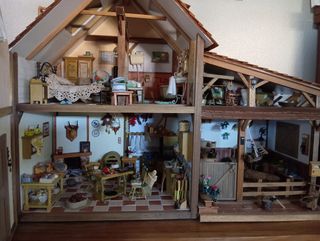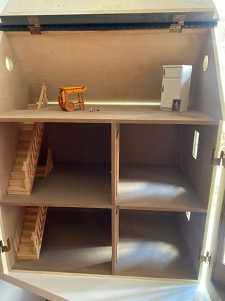 Casa de muñecas de madera de las buenas su precio así como está 300e y yo 150e lo especial 16 piezas de muebles de madera más la que lleva la casa