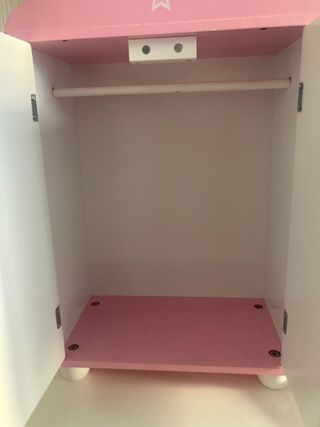 Armario de muñecas, de madera, para ropita de muñecos, en perfecto estado, lo que se ve en las fotos. Medidas 42cm de alto, 29cm de ancho y 15,5cm de fondo. Está montado, pero si no puedes recogerlo en persona, se puede desmontar y se enviaría en una caja, te podría enviar después fotos de los tornillos y sus ubicaciones para que pudieras montarlo. Precio no negociable, preferiblemente en mano, en caso de envío, los costes son responsabilidad del comprador. Más información por privado.