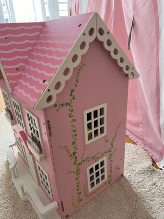 Casa de muñecas rosa y beige