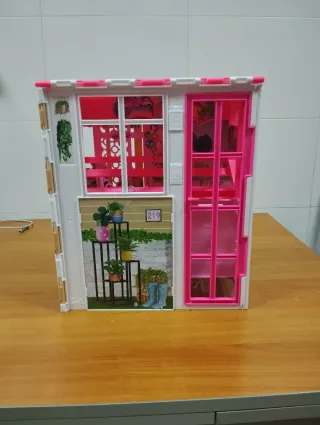 casa de muñecas para niña o niño. se puede plegar y transportar facilmente porque tiene asa. Trae todos sus accesorios como se puede ver en las fotos, tambien su muñeca, bebe y perrito. Esta muy bien conservada