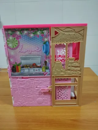 Casa de muñecas Barbie con un diseño colorido y detalles encantadores. Plegable.