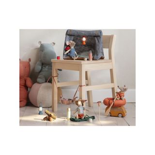 Ilumina la noche con esta linterna en miniatura. No olvides apagar la luz cuando tus amiguitos se retiren a descansar. La batería puede ser reemplazada por un adulto. Para la casa, tienda y colección de muñecos Maileg. Se puede complementar con la colección de ropa Maileg. Medidas: 7 x 2,5 cm. Edad: a partir de 3 años. Instrucciones de lavado: lavado de superficie. Material: metal. De la firma danesa Maileg.