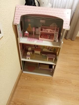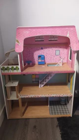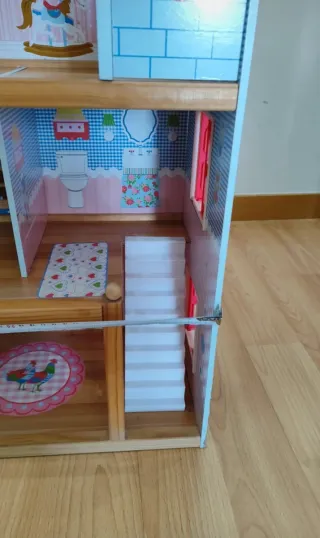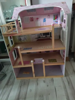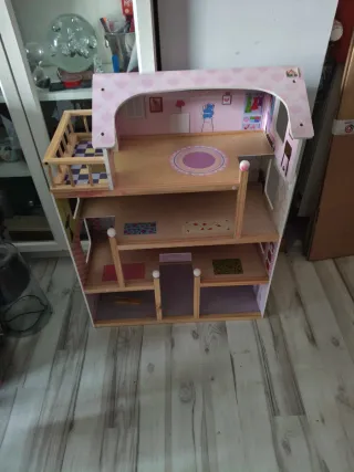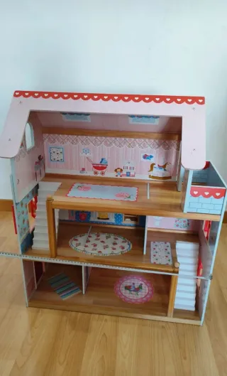 Casa de muñecas de juguete. Con accesorios. tiene alguna marca de uso pero esta en bastante buen estado.