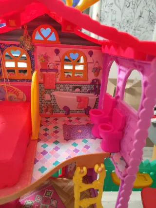 Preciosa casa de juegos Bellies con tres muñecas grandes incluidas. La casa está en buen estado y es ideal para jugar. - Incluye tres muñecas Bellies grandes. - Casa de juegos con diferentes espacios. - Incluye tobogán, water y otros accesorios.