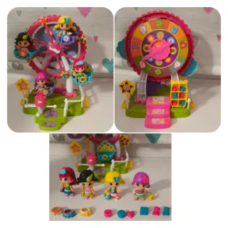 Completo lote de PinyPon que incluye una noria, parque de atracciones, caravana, barco, casa y muchas figuras y accesorios. - Noria con accesorios. - Parque de atracciones con accesorios. - Caravana con accesorios - Barco con accesorios - Casa con accesorios