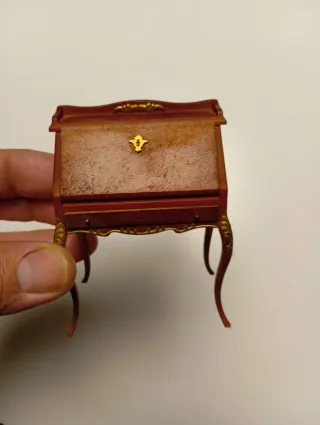 Detallado muebles de casa de muñecas con un diseño clásico.cada uno tiene su precio de 10€,15€,20€ - Acabado en madera oscura y detalles dorados. - Patas curvas elegantes. - Ornamento decorativo en la parte superior.