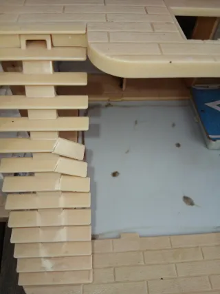 Casa de muñecas de madera con varios niveles y habitaciones. - No Incluye las figuras. - Decoración interior detallada. Se restauró las partes que estaban peor con vinilo adhesivo y alguna esta pintada.