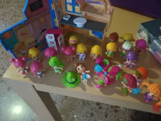 Set de juguetes originales de Enchantimals, en excelente estado. - Casa de muñecas con accesorios. - Figuras de muñecas y animales. - Mobiliario y vallas. - Cocina de juguete. - Mesa y sillas.