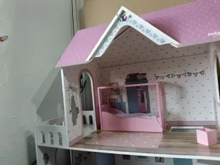 Casa de muñecas rosa con accesorios