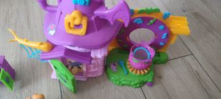Casa de los cuentos de Pin y Pon. - Diseño de casa de cuento. - Puerta principal morada con símbolo. - Ventanas con detalles de corazón. - Tejado rojo. Los muñecos están incluídos: Blanca nieves y los 7 enanitos, pinocho, cenicienta....