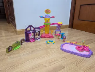 Set de Pin y Pon de Pin que incluye Parque Acuático, Casa, accesorios y muñecos. Se puede negociar venderlo por separado. - Incluye varias figuras y accesorios. - Cabeza gigante de almacenamiento. - Parque acuático. - Casa