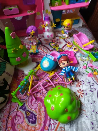 Lote de juguetes Pin y Pon que incluye una casa, una carroza, lol, animales y varios muñecos. - Casa de juguete con detalles. - Carroza. - Diversos muñecos y accesorios. *Ni se vende por separado: pack 20€