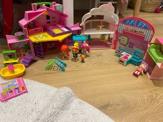 Conjunto de casitas de Pin y Pon y una hamburguesería. - Incluye cuatro casitas - Incluye un hinvernadero - Incluye un jardin - Incluye una hamburguesería. - Incluye coche y carro - Incluye accesorios- Incluye Ponies Preguntar precio por separado