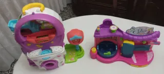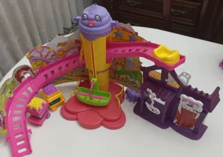 Set de juegos de Pin y Pon. - Incluye Castillo, centro comercial, hamburguesería ,casa y árbol de las hadas,feria de atracciones,spa, ambulancia ,caravana,moto y sidecar,etc - Muy buen estado - Muchas figuras incluidas.