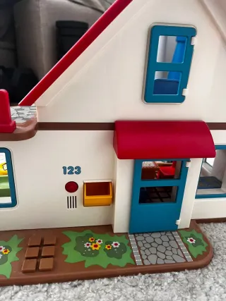 Casita de juguete de Playmobil. - Incluye buzón amarillo. - Ventanas y puerta de color azul. - Tejado rojo.