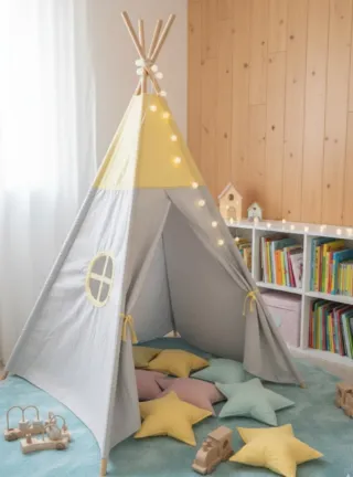 Tipi Infantil Diseño Nórdico Gris y Amarillo