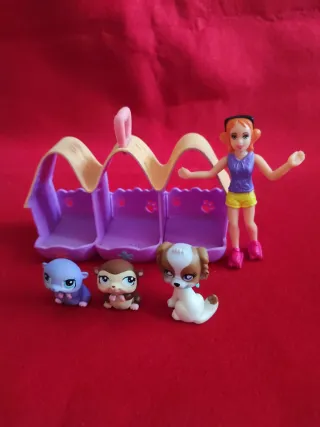 Set de juego de Littlest Pet Shop que incluye una muñeca y tres adorables mascotas. - Muñeca con accesorios. - Tres figuras de mascotas: un perro, un mono y una ardilla. - Transportín o casita de juego con compartimentos.