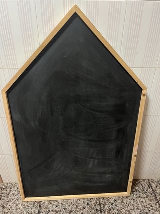 Pizarra con forma de casita, ideal para decorar o para que los niños dibujen. - Marco de madera. - Superficie negra para tiza. - Medidas: 75 x 116 x 3 cm