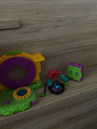 Divertida casita de las Bellies con accesorios. - Incluye dos muñecas Bellies. - Base de juego verde. - Accesorios como mesa, carrito y cuenco con bolitas. Me quedan algunos accesorios mas tipo vasos y cubiertos