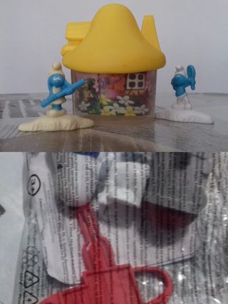 juguetes MC Donald's. - CASITA PITUFOS. Nueva, no jugada. Sólo se ha abierto para la foto. Dentro lleva 2 figuras: Pitufo y Pitufina. El decorado se puede pintar....... 3€ - SNOOPY. Figura de Snoopy sobre un cohete. NUEVO........ 3€ NO REBAJO NO INTERCAMBIO
