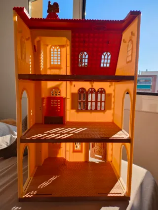 Casita de muňecas, con todos sus accesorios, esta muy bien conservada, y no le falta detalle, incluye un ascensor manual