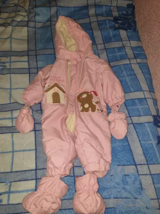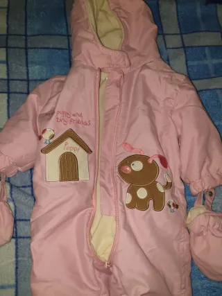 Mono de bebé en color rosa, ideal para los días fríos. Presenta un diseño encantador con un perrito y casita bordados. - Color: Rosa - Diseño: Perrito y casita - Acolchado interior