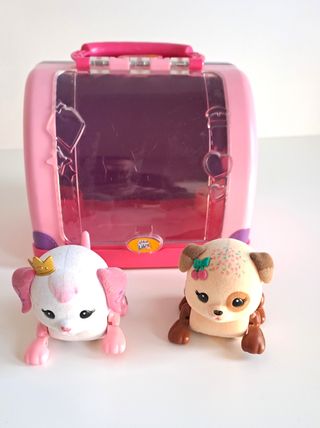 Set de dos perritos Little Live Pets con su casita. - Incluye dos figuras de perritos. - La casita es de color rosa con detalles. - Los perritos tienen accesorios decorativos.