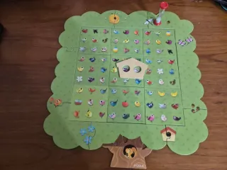 Juego de observación Bird Tree de Goula. Ideal para desarrollar la atención y la memoria. - Incluye tablero con casillas de pájaros. - Piezas de madera con forma de casa. - Reloj de arena para controlar el tiempo.