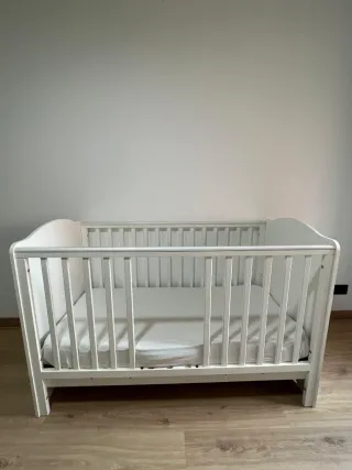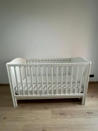 Cuna de bebé de color blanco. Se adapta al crecimiento del niño. - Estructura de madera. - Barreras de seguridad. - Colchón de alta calidad y tejido natural por 40€ más Medidas del colchón: 70x140cms