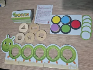 Juego educativo Goula Oli para aprender secuencias, colores y formas. - Incluye piezas de madera. - Fomenta el aprendizaje temprano. - Diseñado para niños a partir de 2 años.