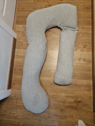 Almohada de maternidad en forma de C, ideal para el descanso. - Color gris. - Funda de tela suave.