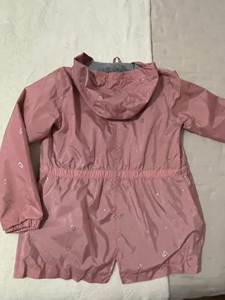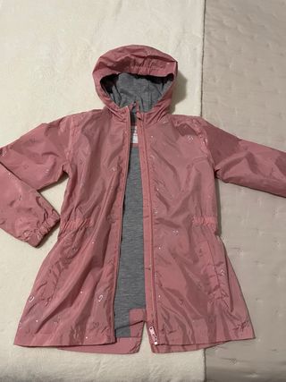 Chaqueta impermeable para niña de la marca Lefties. Ideal para días de lluvia. - Color rosa con estampado de corazones plateados. - Capucha. - Cintura ajustable con cordón. - Bolsillos laterales.