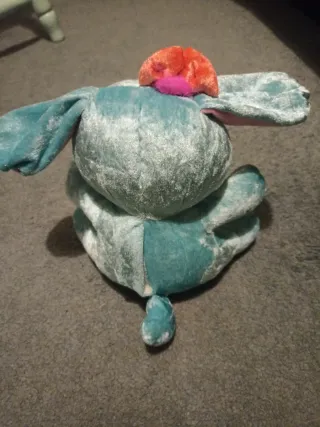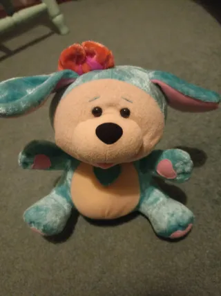 Adorable peluche Smoochies con un diseño tierno y divertido. Peluche de finales de los 90 de la marca Simba. No funciona - Color principal azul con detalles en rosa y naranja. - Orejas largas y suaves. - Adorno en la cabeza.