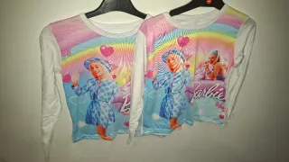 Conjunto de camisetas infantiles con diseño de Barbie, nuevas y con etiqueta. Disponibles en últimas tallas. - Estampado vibrante con imágenes de Barbie. - Mangas largas. - Tejido suave y cómodo.
