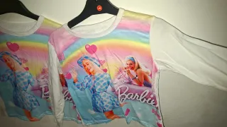 Lote de ropa infantil con estampado de Barbie. Incluye varias prendas. - Diseño vibrante con imágenes de Barbie. - Ideal para fans de la muñeca. - Prendas de manga larga....