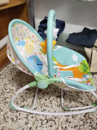 Hamaca para bebé con un diseño alegre y colorido, ideal para el entretenimiento y descanso. - Arco de juegos con peluches. - Tejido acolchado y suave. - Estructura metálica. - Diseño con animales y elementos de la naturaleza.