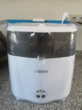 ¡Prepara todo para la llegada del bebé! Vendo esterilizador eléctrico de biberones Dr. Brown's Deluxe. ✅ Estado: Completamente nuevo, aún con el precinto de plástico original (como se ve en las fotos). ✅ Capacidad: Hasta 6 biberones. ✅ Extras: Incluye bandeja para accesorios (chupetes, tetinas). ⚠️ Nota: La caja de cartón exterior está un poco deteriorada por el almacenamiento, pero el aparato está intacto y sin estrenar. ¡Aprovecha esta oportunidad para conseguirlo a un precio genial!